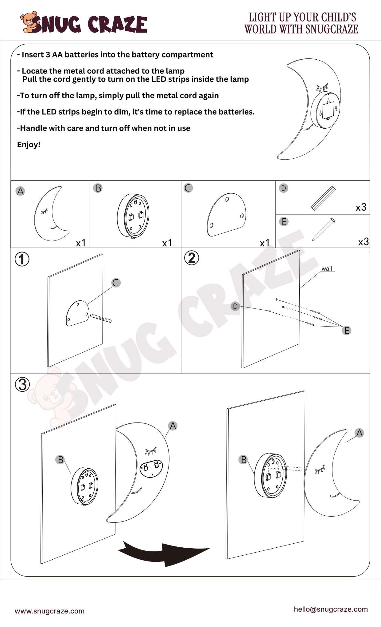 Crafted from non-toxic, kid-safe materials, every piece is thoughtfully built with maximum safety in mind. Installation is simple and hassle-free, and the child-friendly pull switch makes daily use easy and fun. Both cloud lights in this bundle can be personalised with your child’s name for an extra cost, turning a glowing nursery accessory into a memorable keepsake. Whether it’s for a new nursery, birthday, or a comforting bedtime glow, this bundle is made to warm the hearts of both parents and little ones.