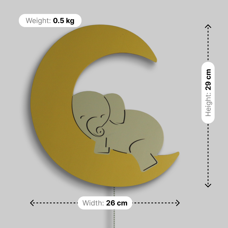 Let your child drift off to sleep under the peaceful gaze of a gentle elephant resting on a crescent moon. This nursery wall lamp adds a soothing, dreamy glow to any space, making every night feel magical.