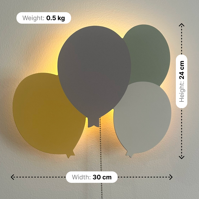 Bring a playful burst of colour to your nursery with this pastel balloon wall lamp. Its gentle illumination and cheerful design create a joyful, uplifting atmosphere that’s perfect for bedtime stories and sweet dreams.