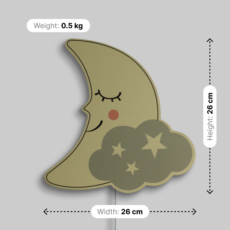 Colour: Cream (moon), Grey (cloud), White (stars)